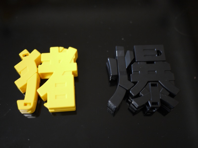 漢字を変型させるプラモ風の食玩「もじバケる」のクオリティが高かった 5月 13 近所のスーパーで50円ぐらいで安売りしてたので買ってみたんだけど、思ったよりできが良かった。 漢字を変型させると、動物やモンスターになる。 こんな感じ。 変型前 「猪」と「爆」が… 変型後 こうなる! クオリティ高ぇ。 その分変型がちょっと面倒だけど。ナノブロックとかよりは遥かに楽。 なんかカードゲーム付けたり流行りに流されてブレてるけど、 ポケモンとコラボするとかして、知育玩具としていけば(漢字を覚えよう的な)もっと売れるんじゃないだろうか。 とか思ったら、アマゾンでシリーズ5とかまで売ってたから、 僕が知らないだけで流行ってるのかなぁ…。