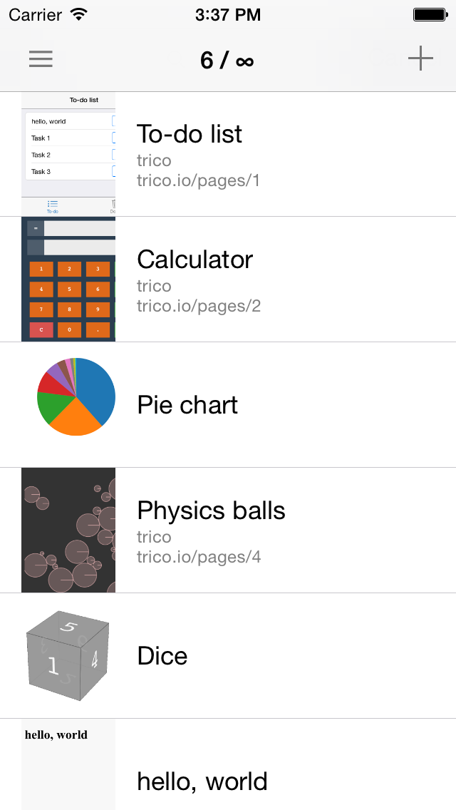 また、どうせリリース時期が伸びてしまったんだから…とアプリ内で作ったWebページをサーバ上(Trico.io)で公開できる機能もつけてみました。
