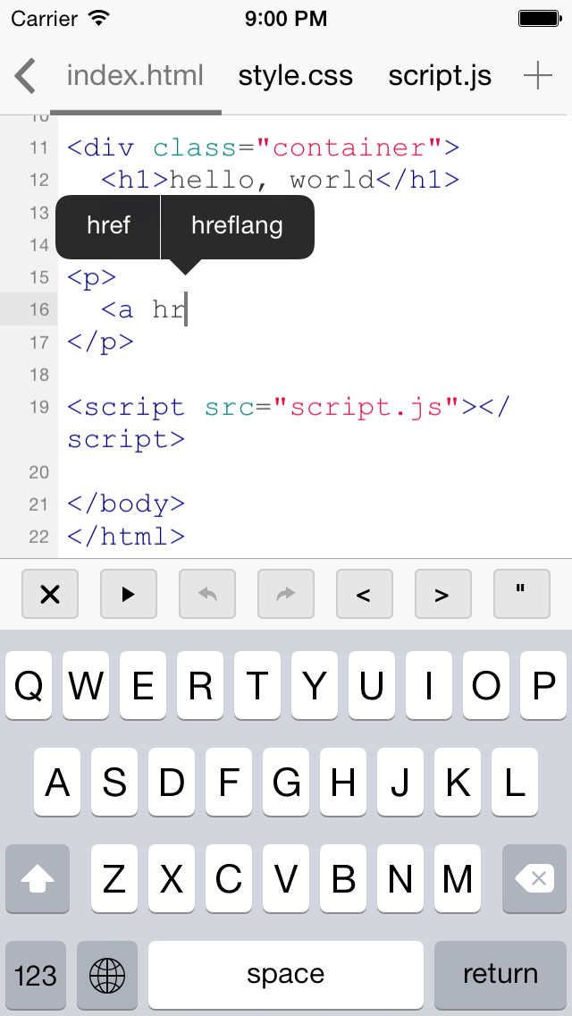 キャッチフレーズの「Hello world without PC」の通り、iPhoneがあればさっくりプログラミングが始められる、そんなアプリになっているんじゃないかな、と思います。